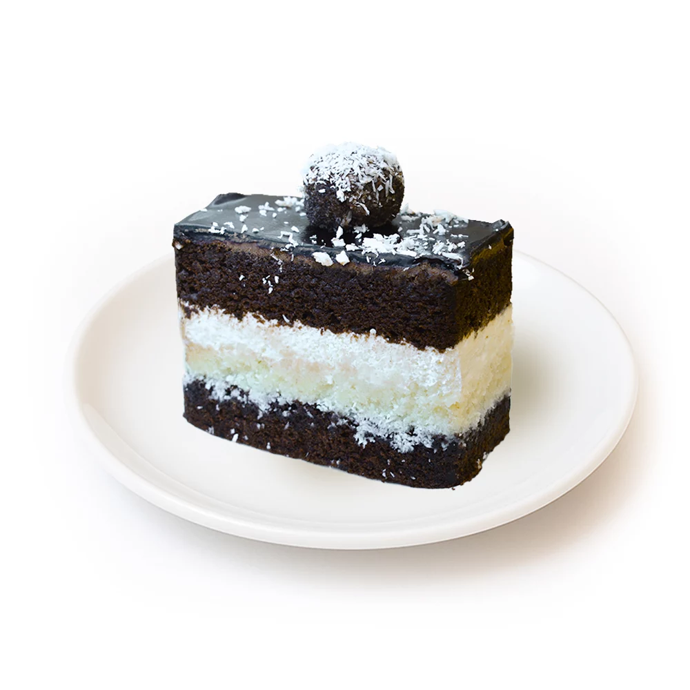 Состав: бисквит шоколадный, кокосовой бисквит, шоколадный крем, заварной крем со сливками, фундук или кешью