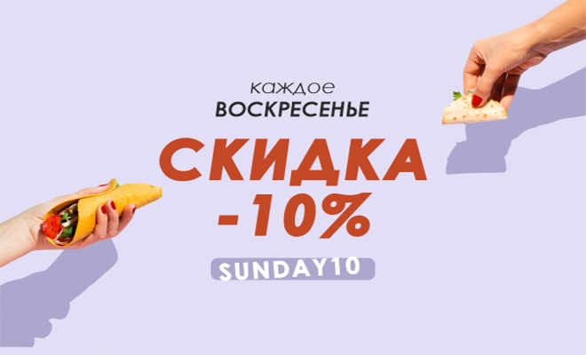 Используйте в приложении промокод: SUNDAY10 и получайте скидку 10% на любой заказ.