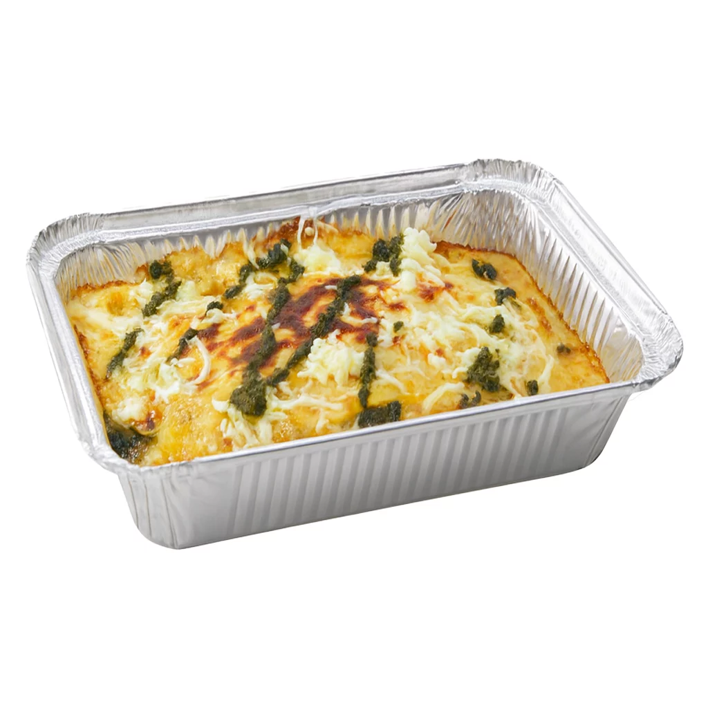 Состав: паста для лазаньи фирменного приготовления, говяжий фарш, соус болоньезе, болгарский перец, лук репчатый, сливки, соус песто, сыр, соус бешамель