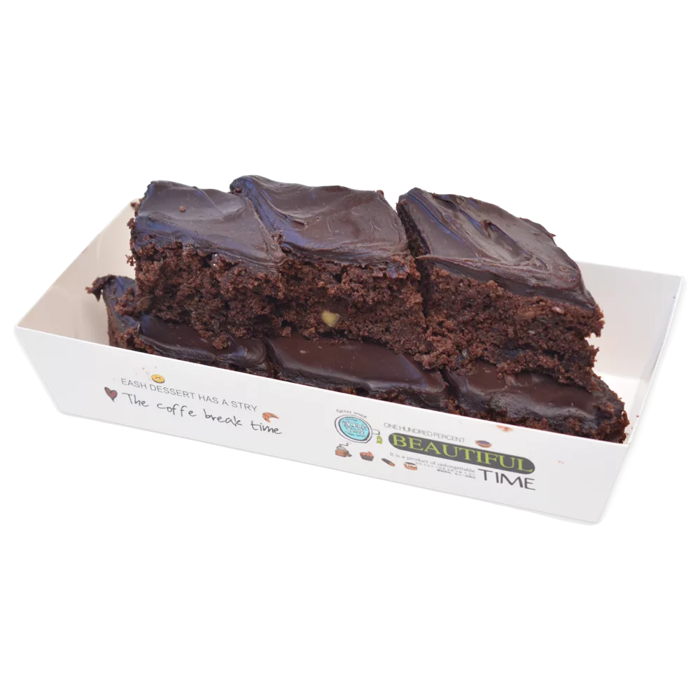 Состав: шоколадный бисквит, шоколад, грецкие орехи