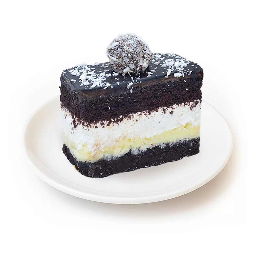 Состав: шоколадный бисквит, крем чиз, кокос, шоколадная глазурь