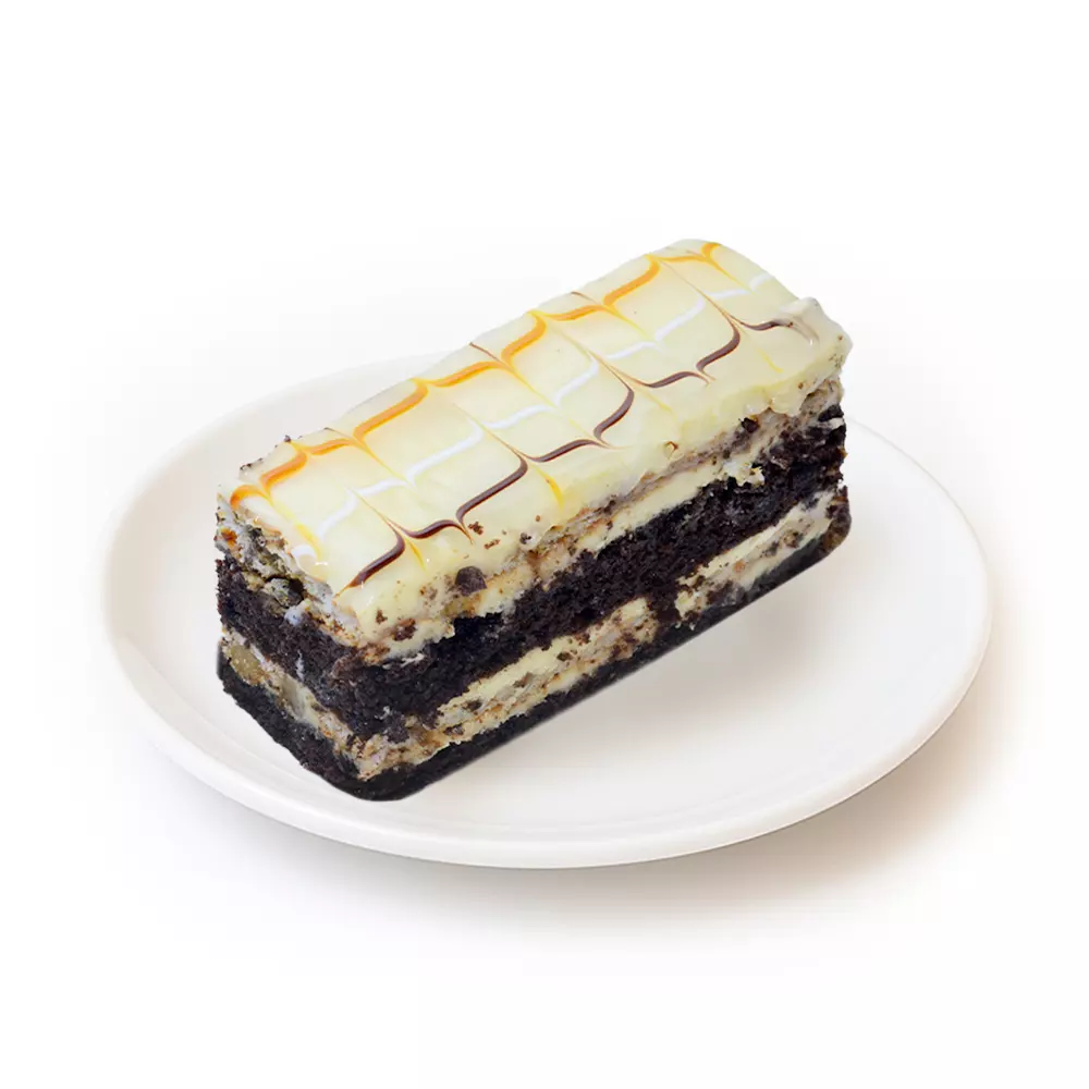 Состав: шоколадный бисквит, сливочный крем, грецкие орехи, сгущёнка.