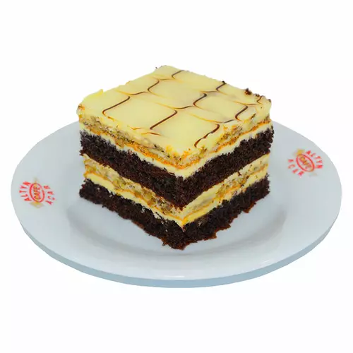Пирожное «Эстерхайзер» - это мягкий и воздушный десерт, состоящий из шоколадного бисквита пропитанного сливочным кремом, сгущенкой и грецкими орехами.