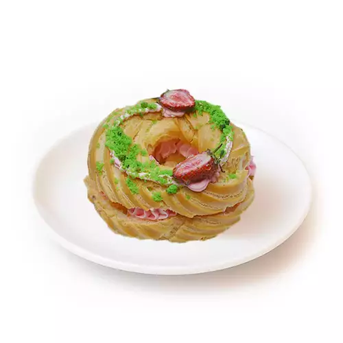 Состав: ванильный чиз крем, заварное тесто, кокосовая стружка, фисташки, шоколадные дропсы, клубника