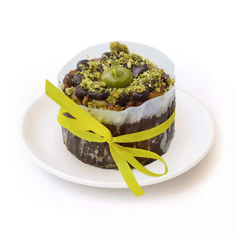 Состав: сырный чизкейк, фисташковая начинка, молочный шоколад, фисташки