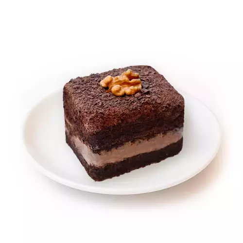 Состав: шоколадный шифоновой бисквит, шоколадный крем чиз на сливках, сгущенка, грецкие орехи, кишмиш