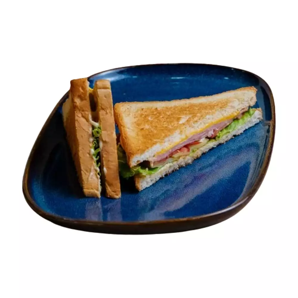 Состав: тост, ветчина, сыр, помидоры, лист салата, кетчуп, майонез