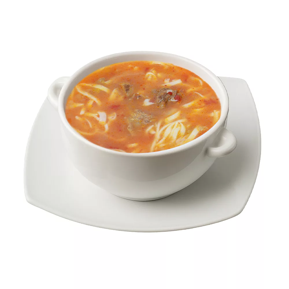 Состав: говядина, лапша, нойба, лук, помидоры, салча, стручковый перец, сметана.