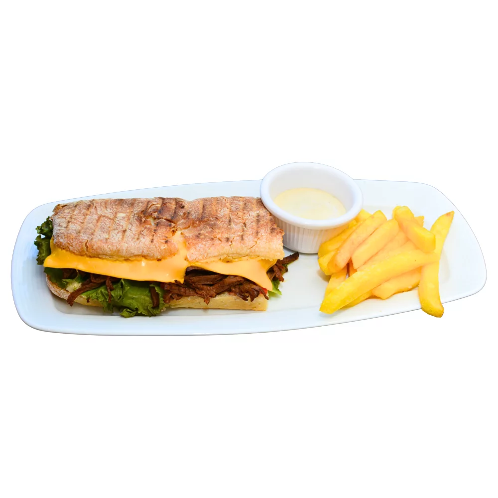 Düzümi: göle eti, çiabatta, pomidor, peýnir, fri, souslar, salat oty