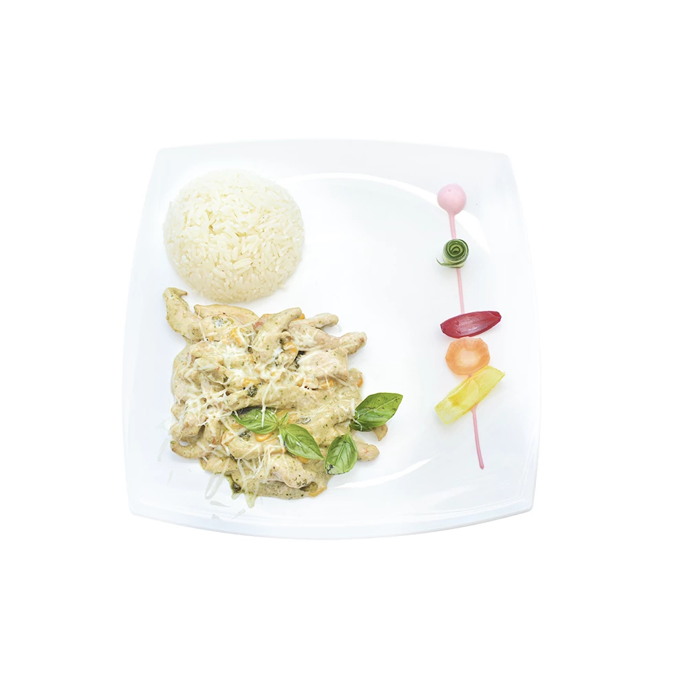 Düzümi: towuk döşi, mekgejöwen, gaýmak, tüwi, peýnir, pesto sousy