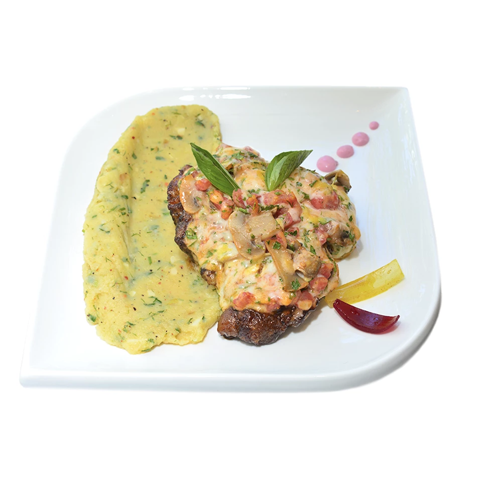 Düzümi: towuk filesi, kömelek, püre, sogan, gaýmak, peýnir,