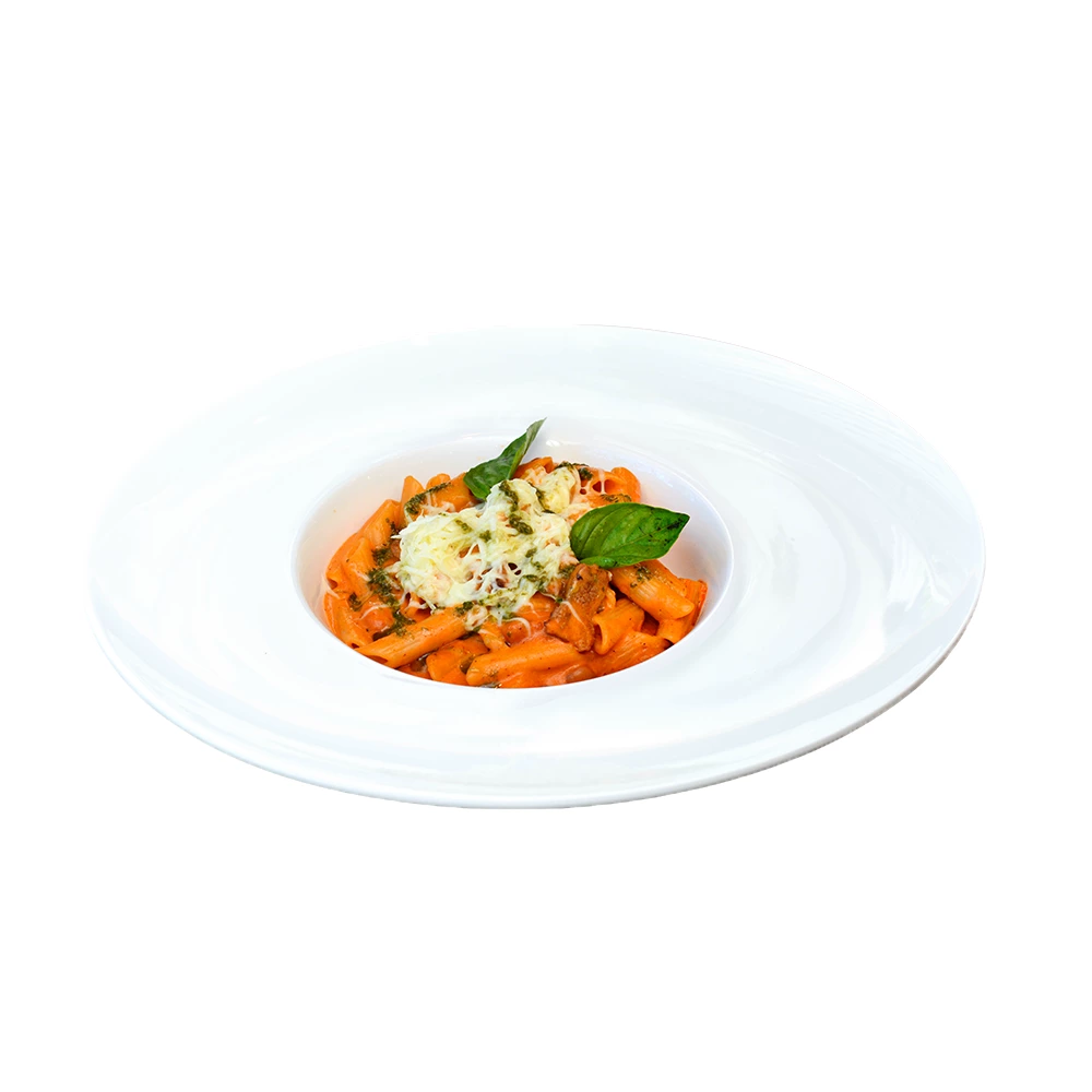Düzümi: penne, kontr file, tomat sously noýba, gaýmak, peýnir, souslar