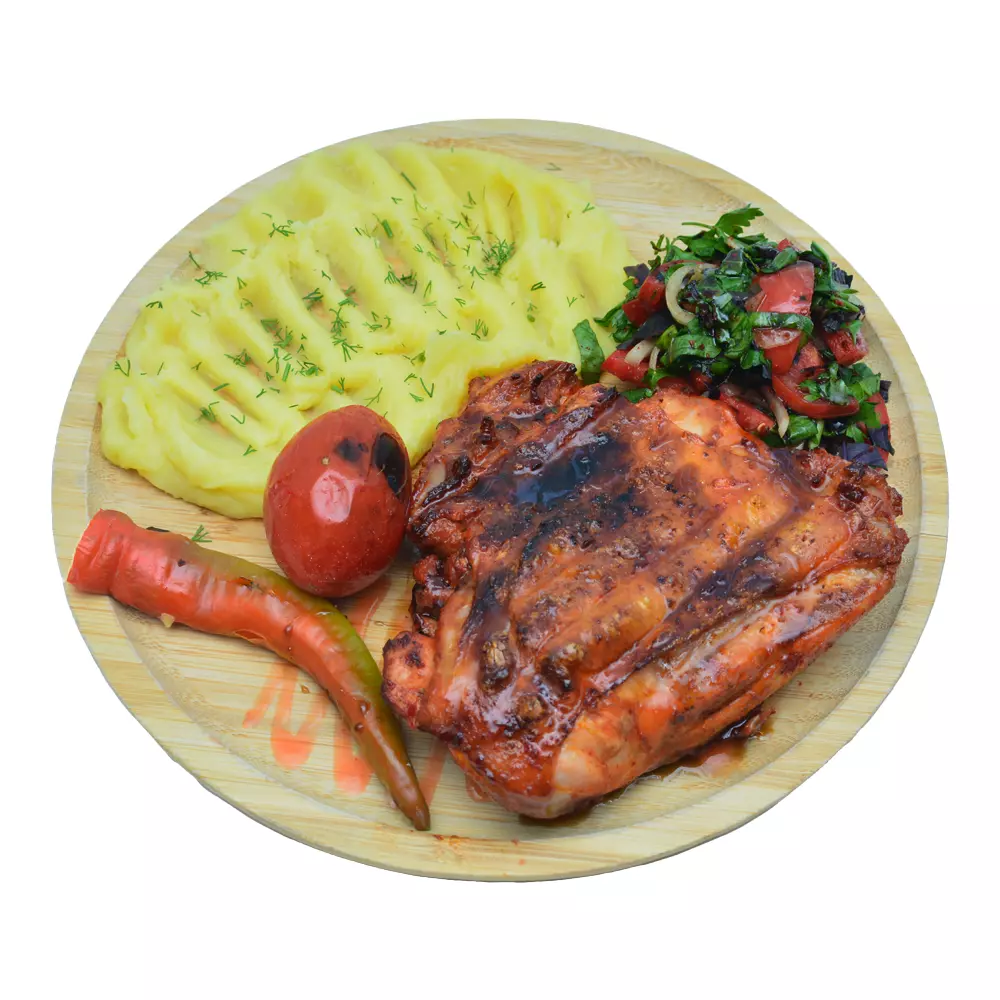 Düzümi: towuk budy, püre, pomidor, sogan, burç