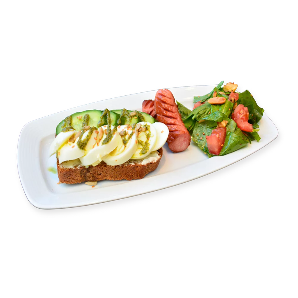 Düzümi: ýumurtga, şöhlatça, gara çörek, krem çiz, hyýar, pomidor, kunji, çigit, arahis, şawel, grek hozy