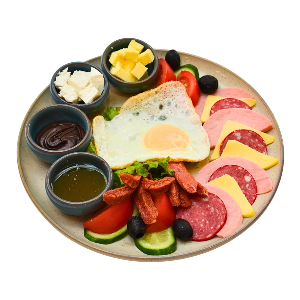 Düzümi: şöhlat, peýnir, duzly peýnir, zeýtun, pomidor, hyýar, bal, ýumurtga, şokolad, mesge, şöhlatça, işdä açar ýapragy, wetçina