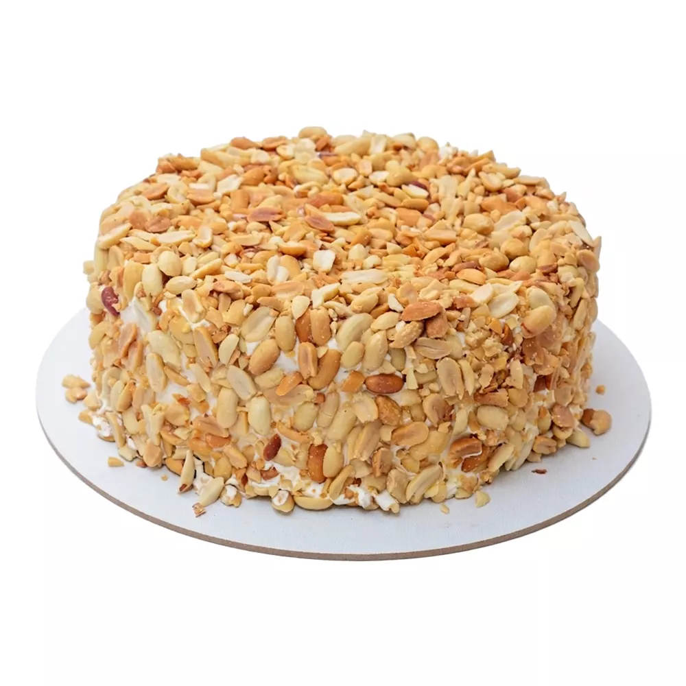 Состав: белый бисквит, сливочный крем, сгущенка, арахис