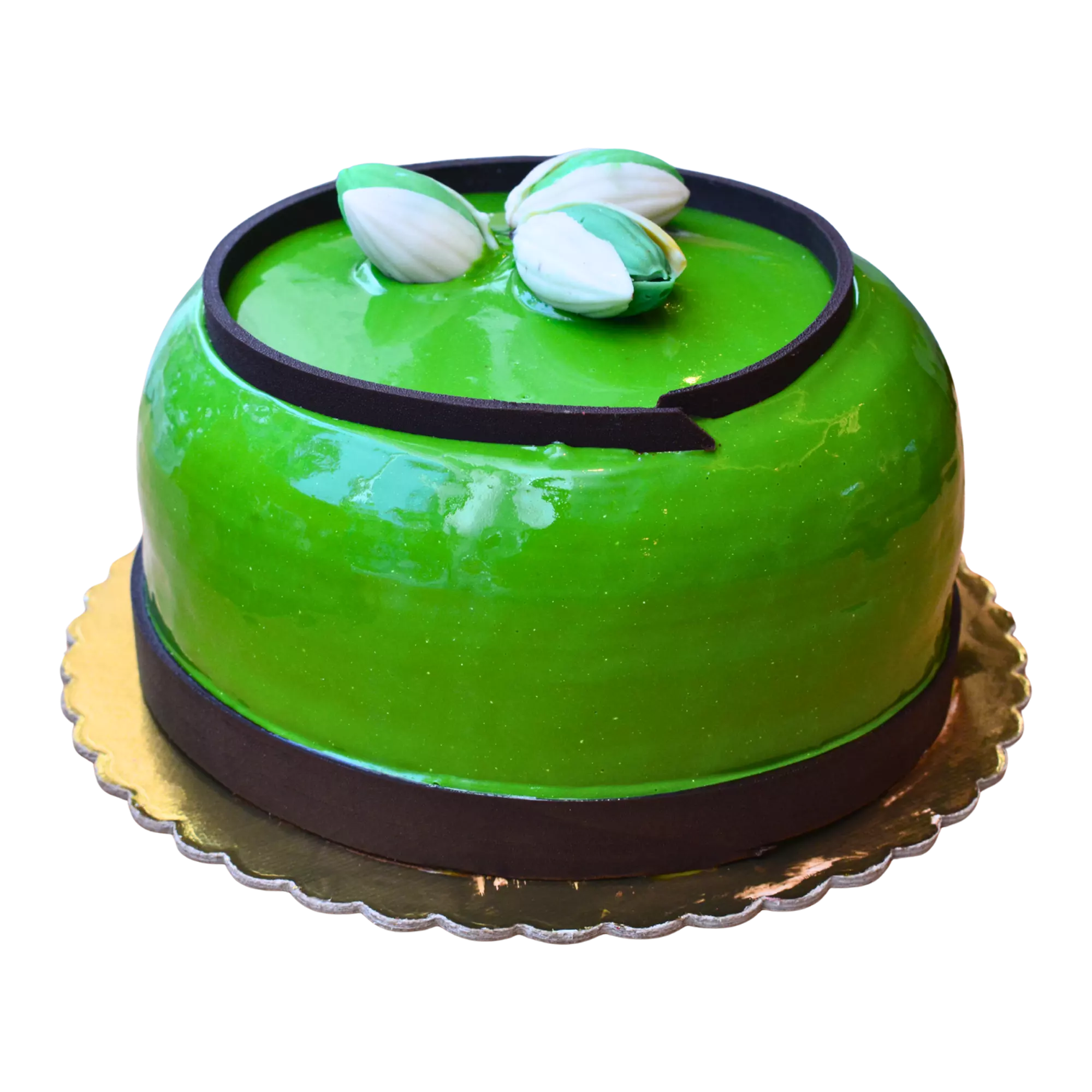 Состав: белый бисквит, чиз крем, шоколадный крем, творожный сыр, сливки, сгущеное молоко, шоколад, фисташки, мятный ганаш