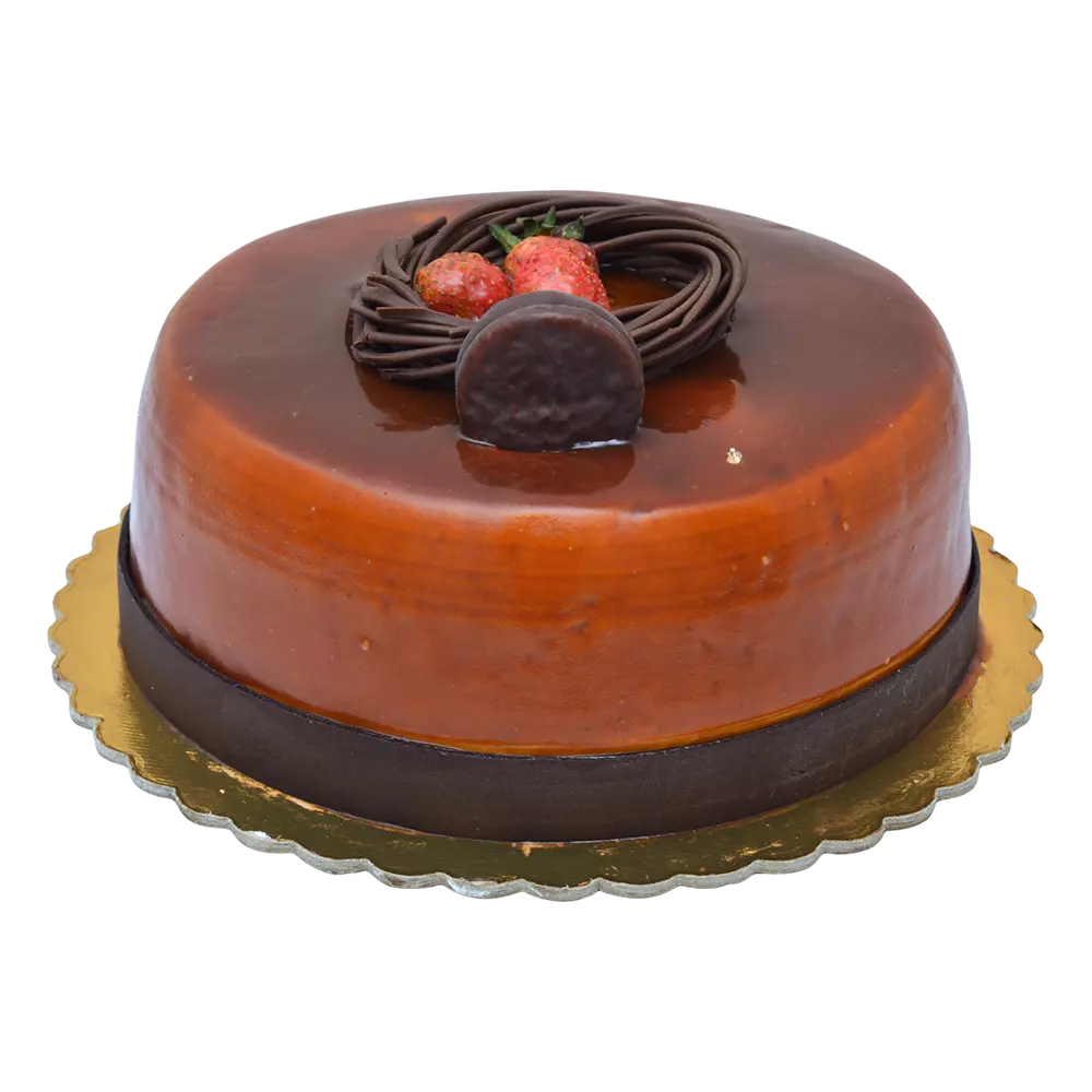 Состав: шоколадный бисквит, карамельный крем, грецкие орехи, шоколад