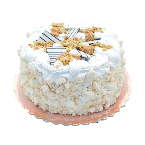 Состав: Белый бисквит, безе, сгущёнка, сливочный крем, грецкие орехи.