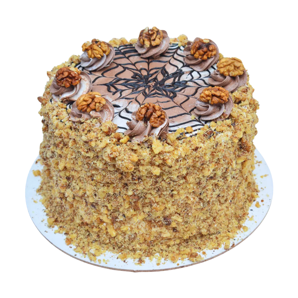 Состав: белый бисквит, крем масляный, коржи 3 вида, грецкие орехи, кишмиш, шоколад