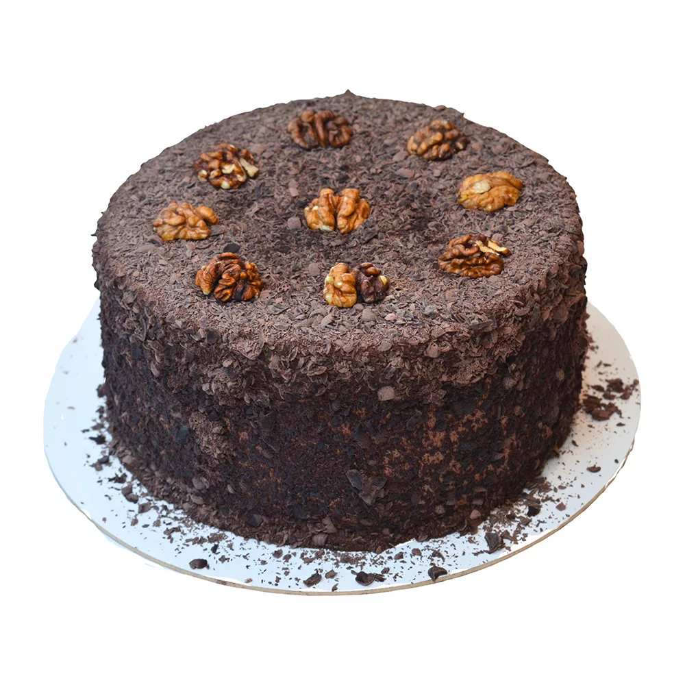 Состав: чёрный бисквит, чиз крем с пралине, кишмиш, грецкие орехи, ириска