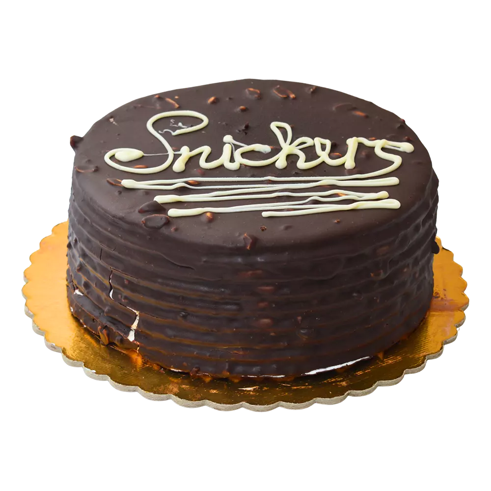 Состав: шоколадный бисквит, сырный крем, грецкие орехи, карамель, арахис, черный шоколад.