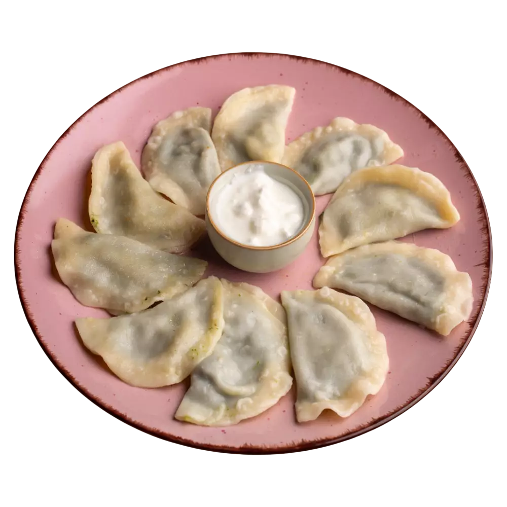 Шпинат, лук репчатый, масло растительное, мука, специи, сметана.