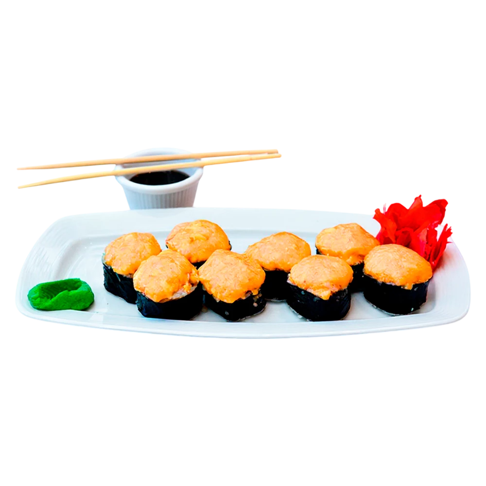 Состав: рис, куриная грудка, огурцы, сыр, майонез, нори, имбирь, васаби, соевый соус